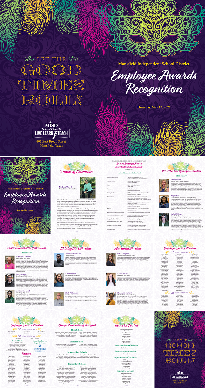 Multi-page programs and booklets are always fun projects involving design and layout of a lot of important information. These are a few I’ve worked on at Integ.
